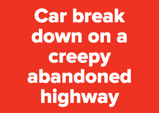 Would you rather hear a loud noise from upstairs when you’re home alone at night or have your car break down on a creepy abandoned highway while you’re alone?