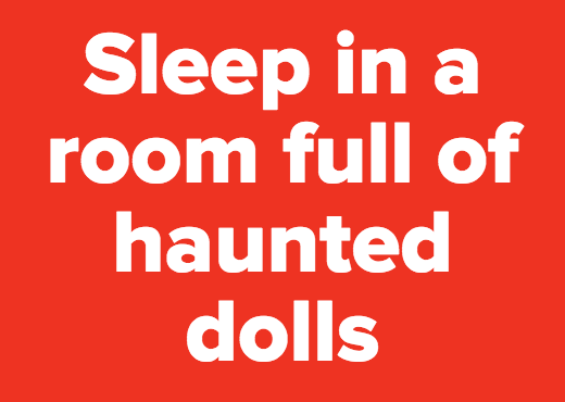 Would you rather go camping in a forest that’s haunted by an evil witch for an entire weekend or spend one night sleeping in a room full of haunted dolls?