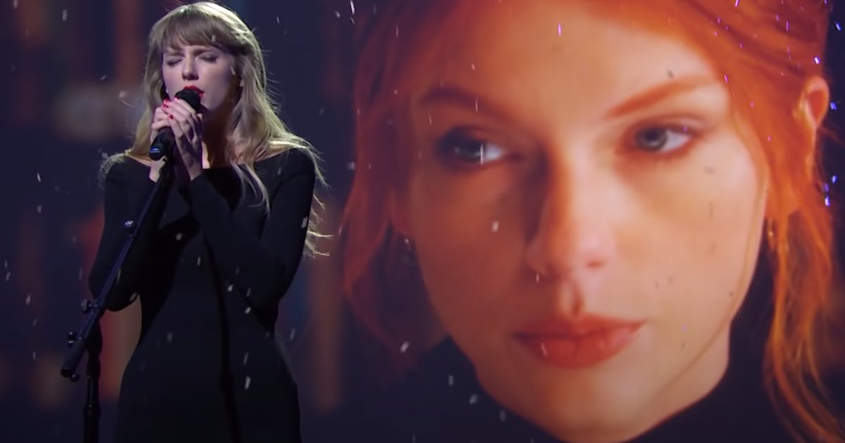 Later, Swift performed the new version of “All Too Well” live for the first time. The heartbreak anthem was originally written for her 2012 album Red, following her tumultuous breakup with Jake Gyllenhaal. The ten-minute song pieces the story together, with new verses that further explain their relationship. During the performance Swift wore an all black outfit and her signature red lipstick, while accompanying herself on the guitar. As she sang the hit-song the track’s recently released short film, starring Sadie Sink and Dylan O’Brien, was projected in the background.